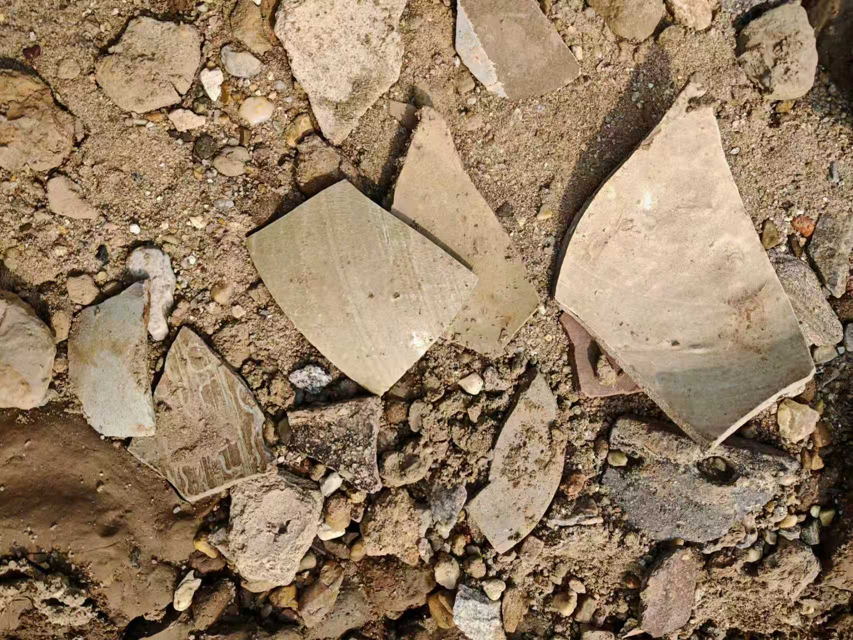 上述器物碎片大小、完整度不一,有的带有纹路,有相对完整的显示为碗装器物,还有的带有弧形握柄。在一些较完整器物底部,记者未看到明显识别符号表示或文字。