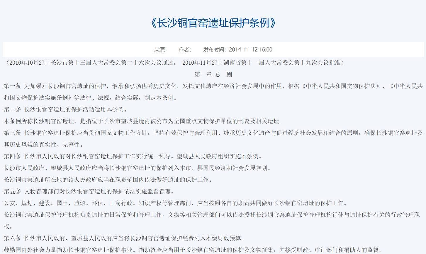 记者注意到,2014年湖南省文物局官网曾发布《长沙铜官窑遗址保护条例》,对不同单位、主体进行了规范和保护内容划分。